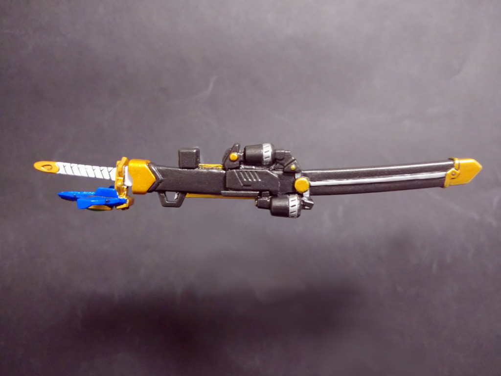 引金を引くことでカートリッジ内のエネルギーを解放、刀を射出することで超高速の抜刀を可能としている。