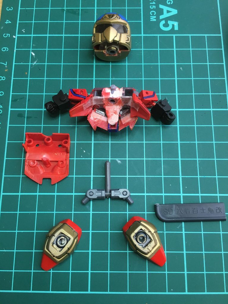 @aniosu1 SD 2021.07/19更新 SDガンダム 武者百士鬼改 箱絵再現 2876 65 いいねしたモデラー(65) 2 2 作品を共有 BB戦士53武者百士鬼改に可動を加え、箱絵を再現しました。今回のテーマは ①頭身を変えない②箱絵を再現する。です。 ガンダムマーカーエアシステムで塗装。文字部分は潔く付属シールを使用。今回箱絵を再現するにあたり、足裏の穴(対頭破守駄と足との接続用)を塞ぎました。代わりに百均の磁石で接続しました。腕、足の可動を広げて二刀流ポーズを可能にしました。 BB戦士 SDガンダム SD戦国伝 風林火山編 コメント コメントをして応援しよう コメントにはログインが必要です お豆腐 4年前 コメント失礼します。 可動仕込み方きれいで理にかなってますね! すごく参考になります✨ BB戦士の小さなボディによくぞここまで……改造お見事です(‘◇’)ゞ @aniosu1 4年前 コメントありがとうございます! 箱絵のポーズをとるためには足の可動は必須でした。 ポリランナーで背骨を作ったことが成功の秘訣ですかね。(ハイキックもできます) 一方で鎧は切り刻んだあとマスキングテープで固定…。 ここは改善点がありそうです💦 @aniosu1 SDガンダムを中心に作成しています。よろしくお願いします。 9 SDガンダム 獣王頑駄無 BB戦士127獣王頑駄無の頭身を延長しました。過去作リメイク… 9 SDガンダム 武者忍剣舞風荒 ドット絵再現 BB戦士40ケンプファーに若殺駆頭の付属パーツを使用して武者… 9 SDガンダム 若殺駆頭 箱絵再現 BB戦士65若殺駆頭に可動を加え、箱絵を再現しました。 9 SDガンダム 武者璽悪 箱絵再現 BB戦士60武者璽悪に可動を加え、箱絵を再現しました。 @aniosu1さんのページ この作品をお薦め作品に設定する Please login to update your profile! Please login to update your profile! Please login to update your profile! Please login to update your profile!