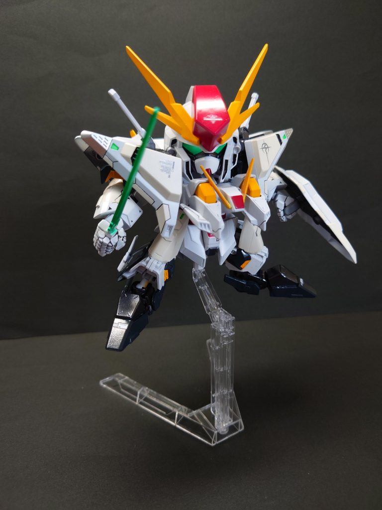 HGが買えなかったのでSDのΞガンダムをクロスフレームとミキシングして改修しました。各部延長、肉抜きを埋めて原作風にアレンジしています。