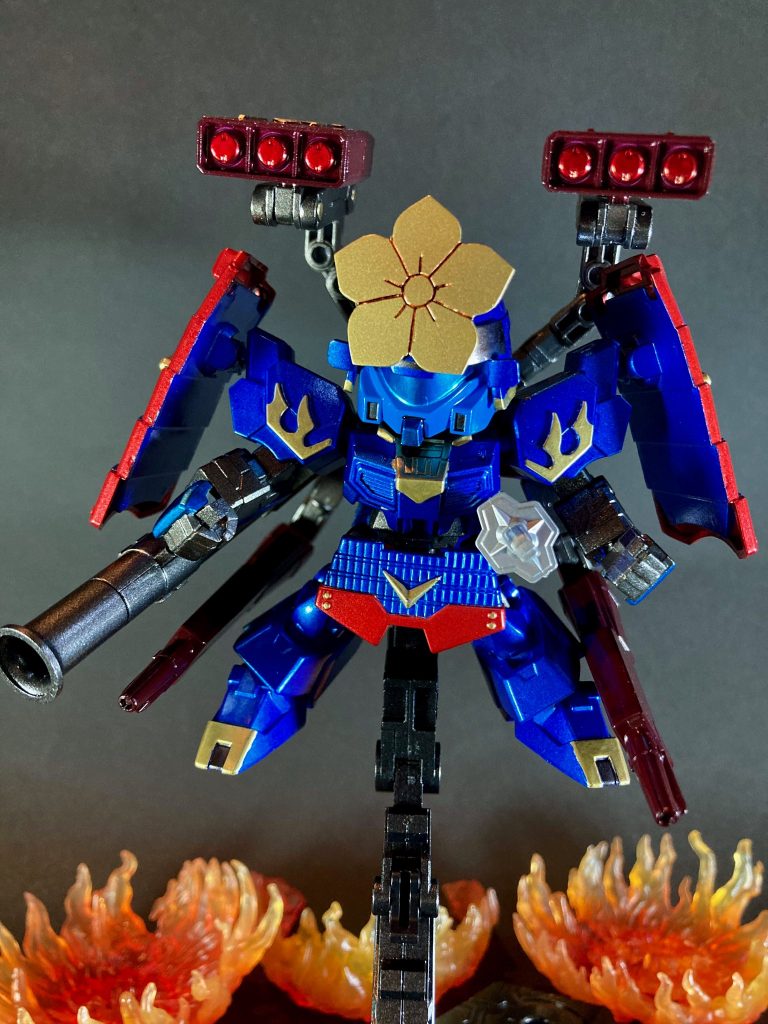 本編では利休ガンダム・ダーク信長エピオン・才蔵デルタカイの登場と怒涛の展開の中で噛ませ犬的末路を辿ってしまったヒーローズ光秀ではありましたが、個人的にとても好きな戦国武将なので、今回このようにモチーフ製作させて頂けて大変楽しい体験となりました。