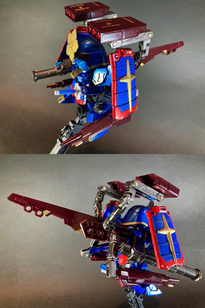 胴体はジェガンと同じCCA世界観の連邦系MS演者である関羽雲長νガンダムをベースに、BB戦士ファーストガンダム大将軍の鎧甲冑パーツ等を組み合わせました。