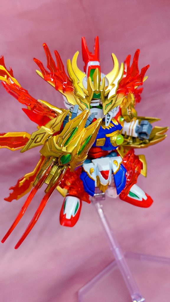 昔は気にならなかったのですが素組みで作ると結構なずんぐりむっくり感があったので三国総傑伝の炎皇張飛ゴッドからパーツを拝借してのミキシングで製作しました。