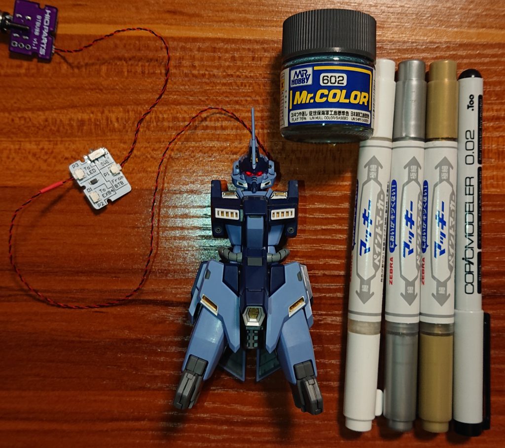 住居環境によりエアーブラシが使用出来ないため、完全塗装は出来ませんが、部分塗装、ハイキューパーツのLEDを使用したUSB給電・完全可動を確保した電飾、つや消し処理でのウェザリングにこだわって製作しています。