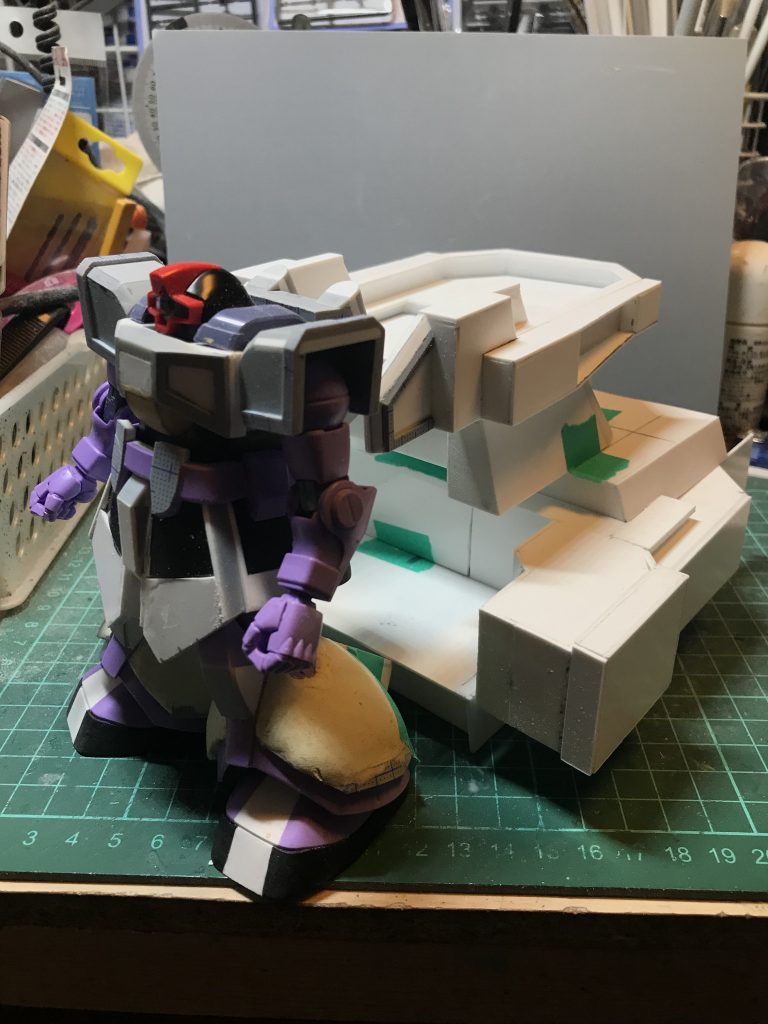 ザクの脚からパテを盛るよりも楽なので脚部は設定よりもデカいです