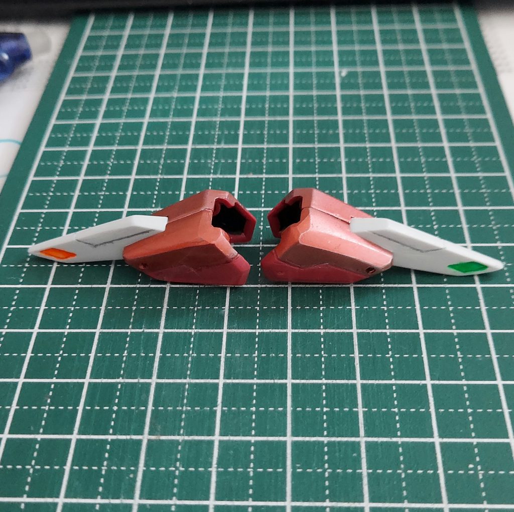 メタレッドはシャインシルバーに比べて塗膜が弱いのか、すぐカドの部分とか剥げてしまって塗り直しになることが多かったので、試しにと買っていたガンダムマーカーのトップコートを使ってみました。その後全てを組み上げてみましたが、使った甲斐はあったようです。