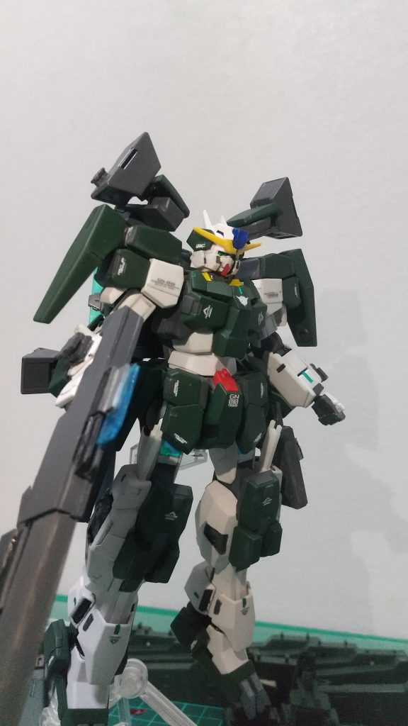 一応本体は完成のつもりです(まあ制作技術は低いですが)今回サバーニャには沢山のギミックを詰め込んで『見て楽しいガンプラ』を目指しました一例としてGNライフルビットIIをライフルの機能だけでなく様々な武器へと変形しその上でホルスタービットに収まる武器を10種制作したり