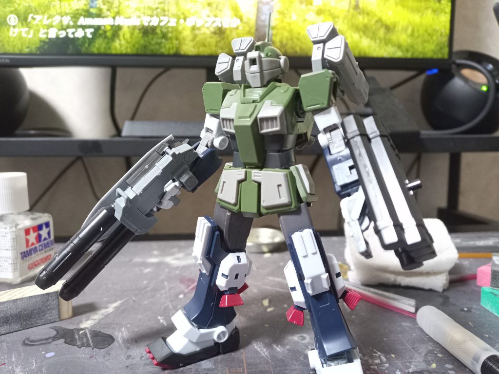 ただ、シーリングはやっぱりサンダーボルトの世界観だからこそ似合うと思ったので、脚はジムスナイパー2、腕関節はペイルライダーから拝借してシーリングじゃなくしました。