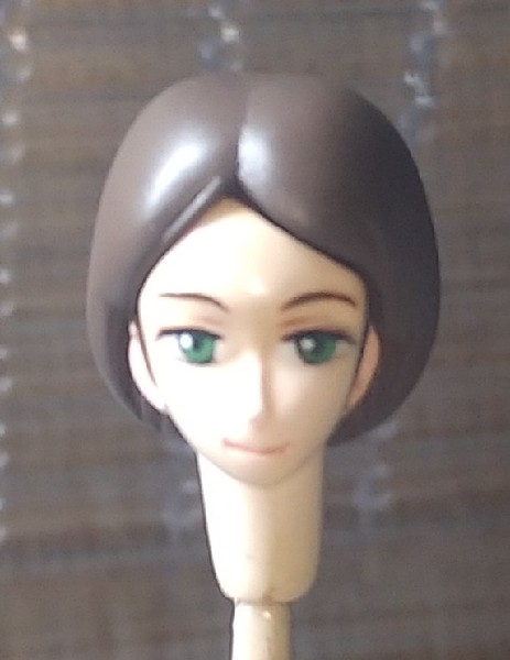 制作中のオリジナルフィギュアのエマさん 小指の先ほども無い小さなお顔なので レンズ交換可能なヘッドルーペを買いまして 倍率2.5のレンズで作業いたしました ただ見えていても思い通りにできる訳でもなく 失敗を繰り返しながらも集中して作業していたら途中経過の写真撮るのを忘れていました(*´д`*) アイボリーのレジンで複製したパーツ 鼻を短くしたのと耳を少し横に広げました 盛り付けはレジンと相性の良いアルテコパテです それにグンゼの透明メタルプライマーで残留キシレンの押さえ込み(これやらないといつまでもにじみ出てくるキシレンのせいでラッカー塗装すら面白いようにペロリと剥がれます)グンゼのキャラフレッシュ2?(ピンクっぽい)を耳や顎下などに軽く吹き付け グンゼのキャラフレッシュ1?(肌色)で白目の部分も塗装 白レジン使用なら白目部分は残して塗装するところですが、先日発見された20年前のお顔パーツは白目が黄色っぽく変色していたので今回は白目も一度ラッカー塗装で隠蔽してからエナメルの白で塗装してみました また、瞳 眉毛 モミアゲ すべてタミヤのエナメル塗料で面相筆塗りです 少し描き込んではラッカークリアでコートして行くのが安全なんですが 今回は白目を塗った後にクリアコーティングしただけで 後は一気に仕上げました ちょっとづつ作業を止めると完成形のイメージが掴みづらくなるので 失敗したら最初からやり直す覚悟で順次色を乗せました また色を塗った髪の毛パーツを装着して全体を確認しながらエマさんに見えるように念じながら息を止めて塗りましたマル 肉眼で見るとこれでOKかな?と思ったんですが写真で見るとガタガタなのがよく分かるね( ´∀`)マル 結果はご覧の通りや(-。-)y-゚゚゚