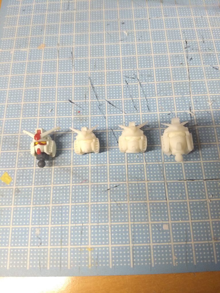 実際のガンダムを下から見上げた時を考えれば今の頭の大きさでいいのでしょうけどそれだと全体的に見た時、頭身数が10頭身以上になってすごく小さくなってしまうのでもう少し大きく作ってみたくなりました。