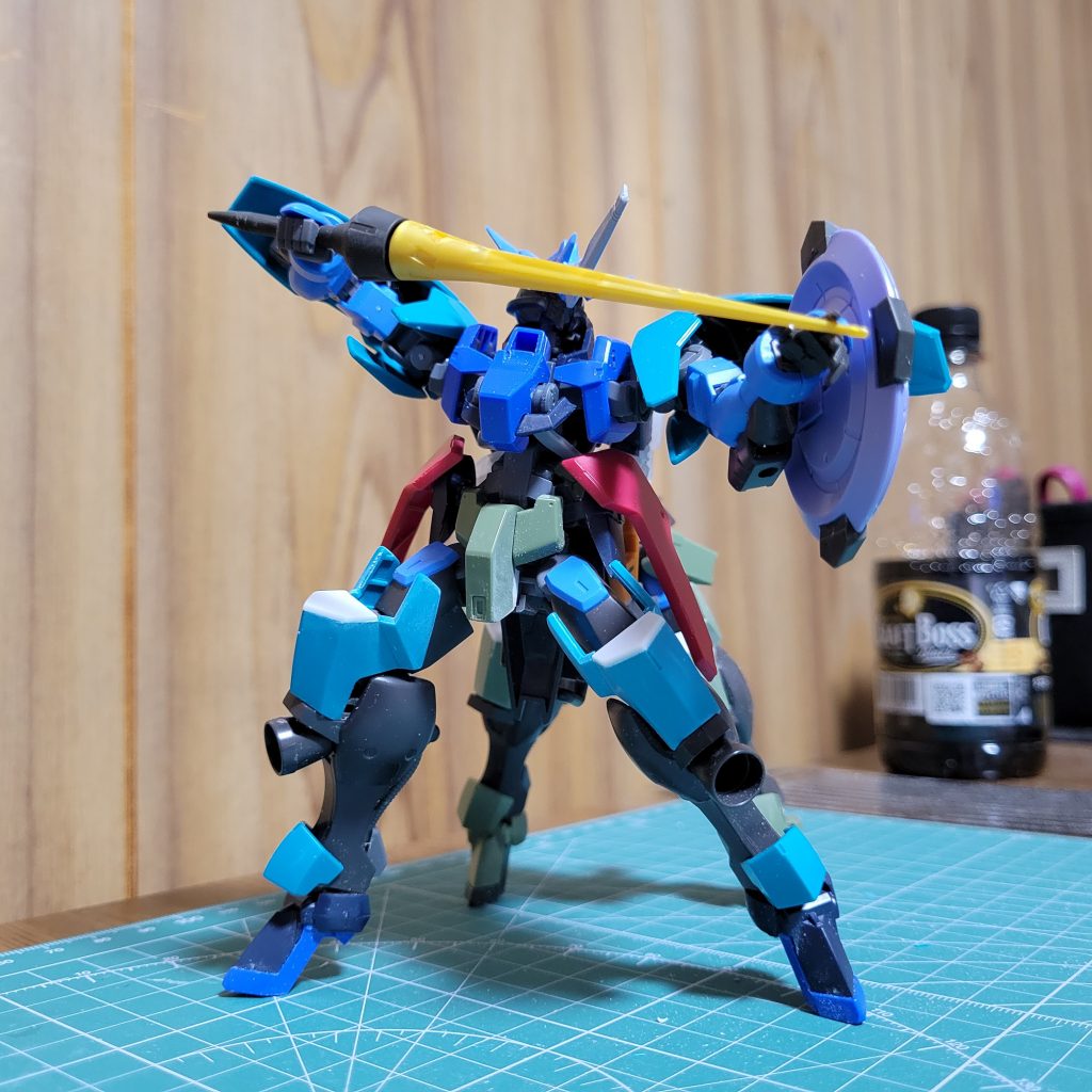 変更した部分は胸の上部に首元を隠すように装甲を追加、腰をグレイズに腰サイドアーマーにグリムゲルデの物を装備しました😆