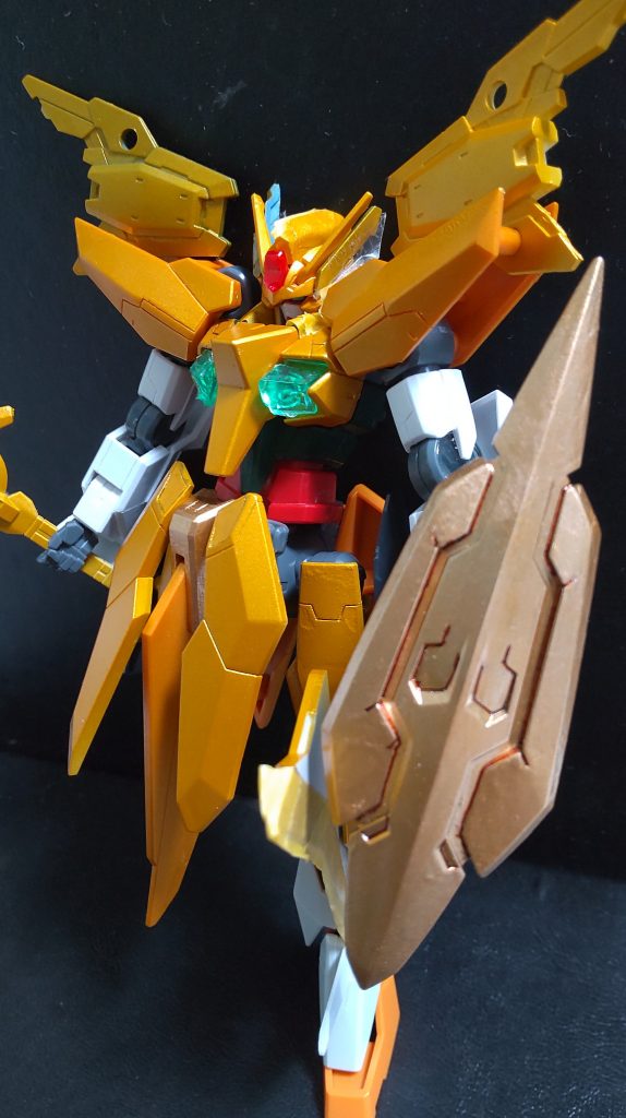 ちょっと実際に塗ってみて配色パターンを考え中。ゴールドのスプレーを噴いてみたところ思ってたより隠ぺい力が弱く、近くで噴きすぎて跡が残ってしまいました。そろそろサフデビューすべきか…。どの種類の金色を使うか、金色じゃない色は何色をどれくらい入れるか、写真にするとまた金色感が変わることなど、金色一色系は配色が意外に難しいですね。