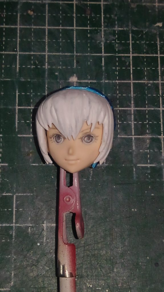ミクヘッドです。前回かなり雑に前髪各所の延長を行いました。具体的には細かく毛先っぽくザックリ三角形にしたプラバンを毛先に無理矢理接着しました。段差や隙間も多少ありガタガタです。でも大丈夫です。瞬着がだいたい何とかしてくれます。