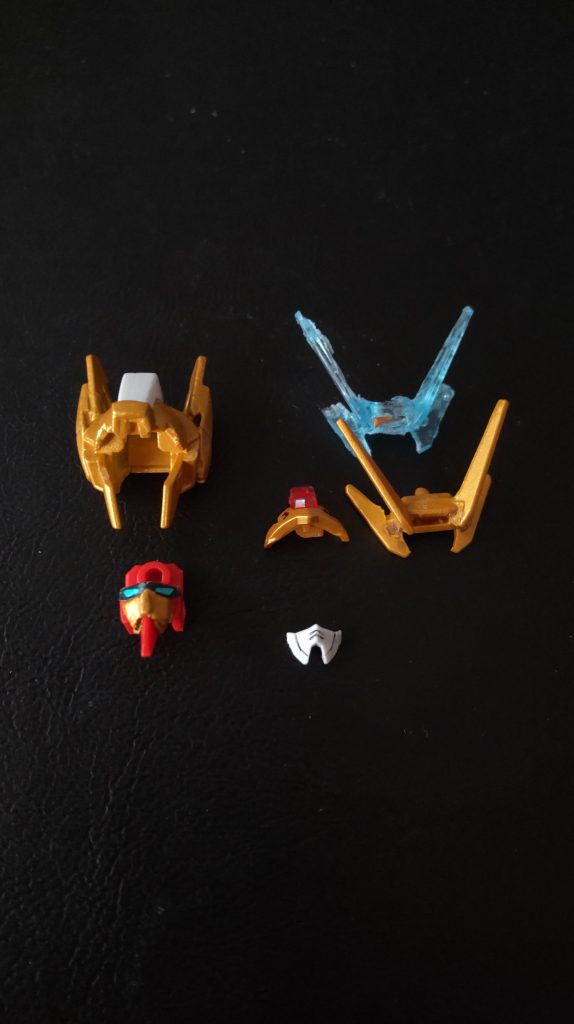 金色の可変機ってあまりいないですよね。可変機にヴェスバーがついてるのも新鮮。ゴールドスプレーの塗料が載りにくかったのはポリカーボネート用?のものを使ってしまったせいのようです(泣)