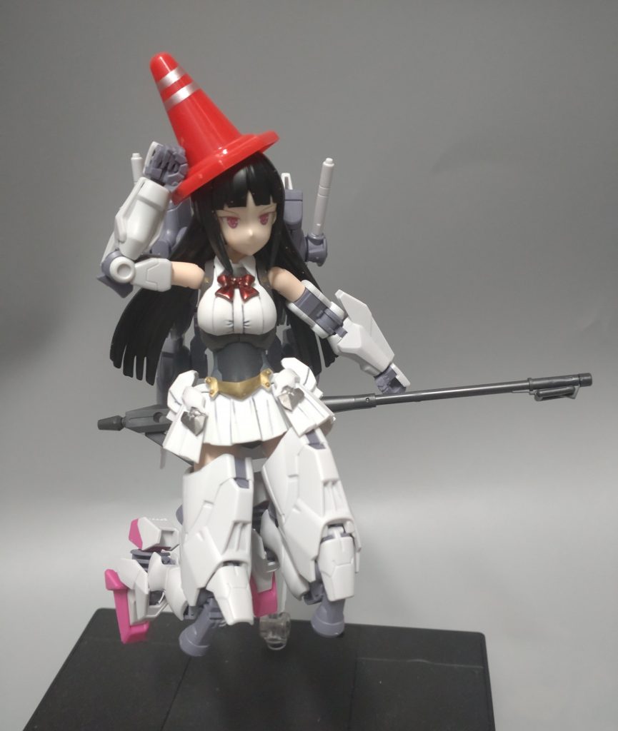 イメージはストレートに魔女です。三角コーンがシュールですが、色を塗り装飾付ければ帽子に見えないかなと試行中。フェダーインライフルは後ろ側を追加しホウキに見立てたいと考えてます。