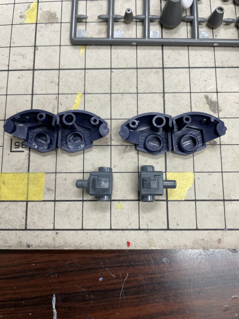 フレーム…アーマーパーツの入口より長い状態なので太軸を削って調整、肩アーマーに収められるよう加工