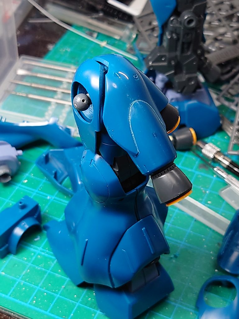 合わせ目消し後ハメ加工って、あまりやってこなかったな(⌒-⌒; ) 近年のガンプラは、HGでもわりと細分化されているし、合わせ目はモールドになってるのが当たり前になってきているからなぁ… 古いMGは技術鍛えられる。肩はオリジナルで分割化、腰アーマーは設定通りに分割化ですね〜 これで腰も完成後に分解可能。設定画のようにバラせる予定( ̄▽ ̄;)