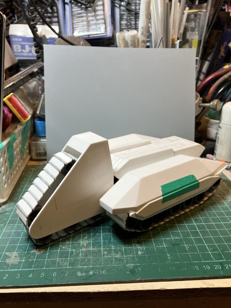 後ろのキャタピラは1/100サイズにした為、2回り程大きくして、カバーは延長しました