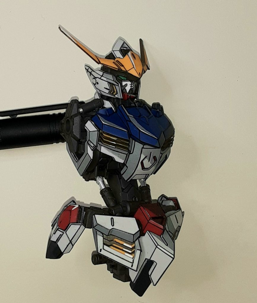 ニコボルさんコメントありがとうごさいます!ニコボルさんのハイライト参考になります!(カラス口使ってるんですねっ😳)私はハイライトの書き方、試行錯誤しておりますが、このバルバトスはクレオスの水性塗料を調色して筆で書きました。輪郭をハッキリさせるため、乾いたあと、スジボリ用ガイドテープを残したいところに張り、デザインナイフで、テープに沿って余分なところをカリカリ削ってます。成形色ならではですね😆2陰は、ポスカの白いの極細で線をひいてますっ!ほんとハイライト入れは難しいですねぇ。精進しますっ😉