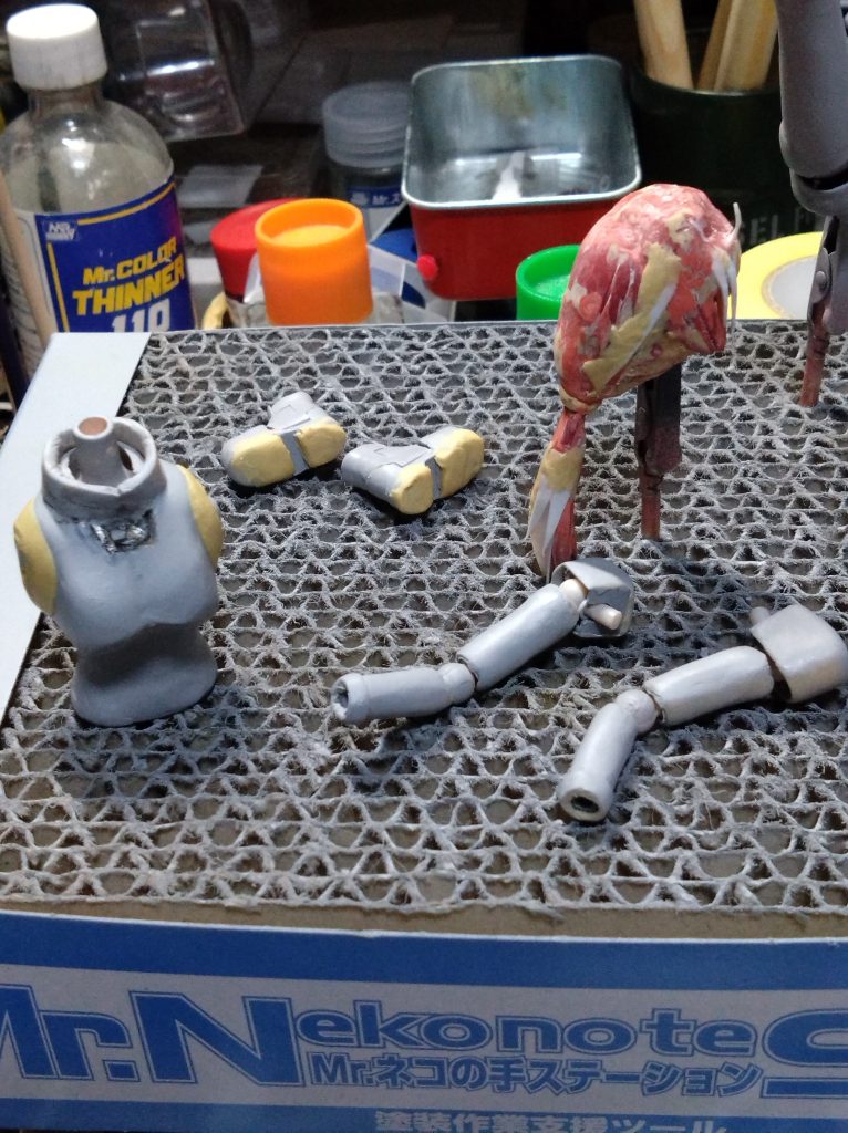 胴体の肩の付け根部分に埋め込んたポリパーツが若干出ていて(本当はツライチにしたかった)そのポリパーツ付近がボロボロになりヤスリが使えなく仕上げれないことに。
