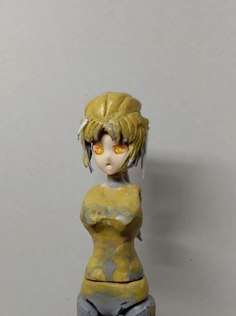 ちょっとスーパーサイヤ人ぽいですが色を塗ったら良くなるはずた信じて硬化後もう少し修整必要ですね。やり直す可能性もありますが。