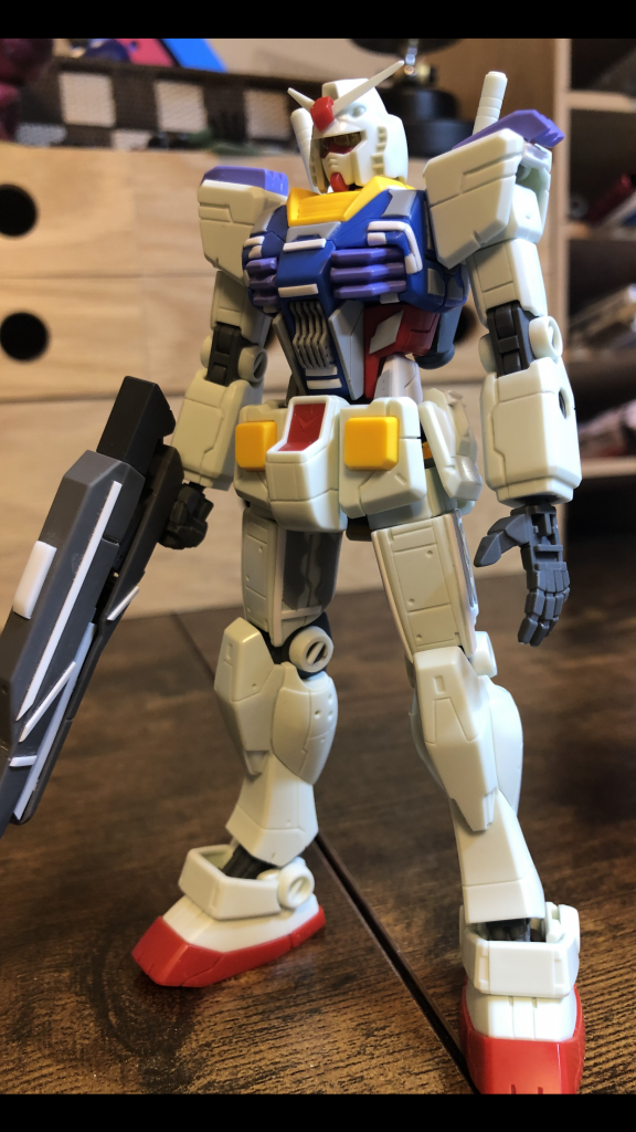 主に腰から上を自分好みにプラ板、スジボリ、他パーツの流用等、改造しました。下半身はアーマー装備の為、事前にアーマーをノーマル状態のガンダムの下半身に合わせて削り込んでしまった為、大胆な改造が出来ず、下半身延長の為、足首関節で1ミリ、膝関節で1ミリ、計2ミリの延長と、主にスジボリでディテール追加しました。最初にアーマーのサイズ調整をしてしまった事は反省点でございます。今後は、頭部、腕、フロントアーマー等、もう少し改造したいと思います。