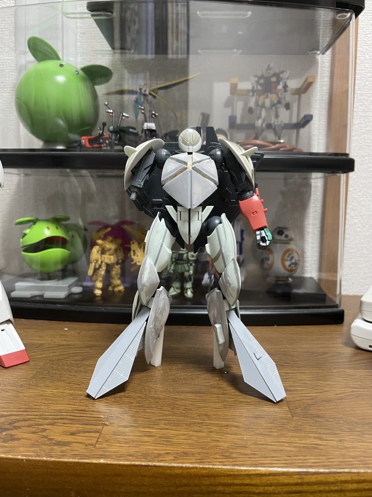 アオリ気味な正面 胴体と太ももおよそ2ミリ幅増し。赤い腹部は…