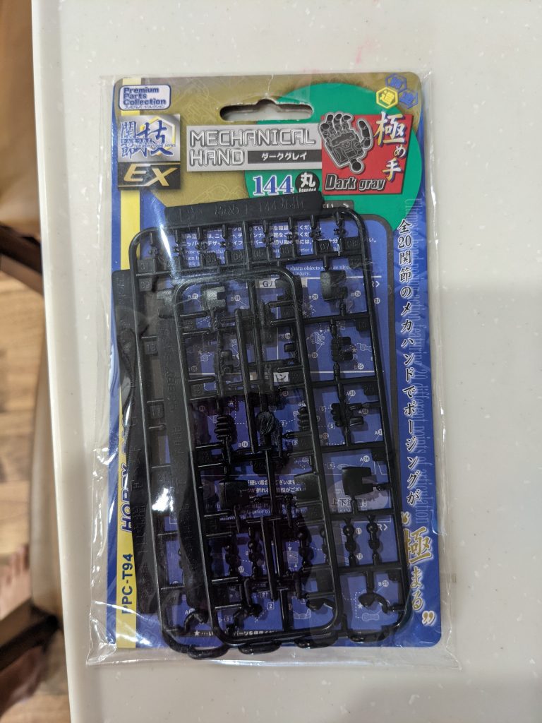 指や手首が自由自在に動かせるようです。ポロリするみたいで、ポーズをきめたら接着しなきゃいけないみたいだけど。色はダークグレーだけど、ほぼ黒。