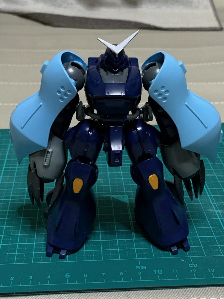 コンセプトは原作(ポケ戦の方)でやられた装甲の脆さを克服したイメージと特徴的な移動シーンで水中型のMSみたいに移動するよなーってところから空気抵抗の軽減と装甲強化を一括考慮してハイゴックのショルダーシールド付けてみたり。他には弾切れをあまり気にせずさらにサーベル抜く手間を省く想定でズゴックEの腕をつけて、さらに着脱可能にしてる人にあこがれて挑戦してみたり。(なんか腕の稼働が割といい感じになったうれしい誤算。)
