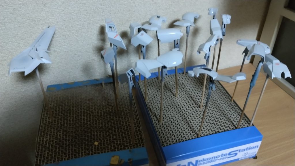 「決して設定色にこだわらない」を自分の決め事にして、基本素組で各機ロールアウト直後の様な感じで自己満足で作っています。こだわりとしては、全塗装です。パッケージアートと説明書やYoutube等で情報収集してます。