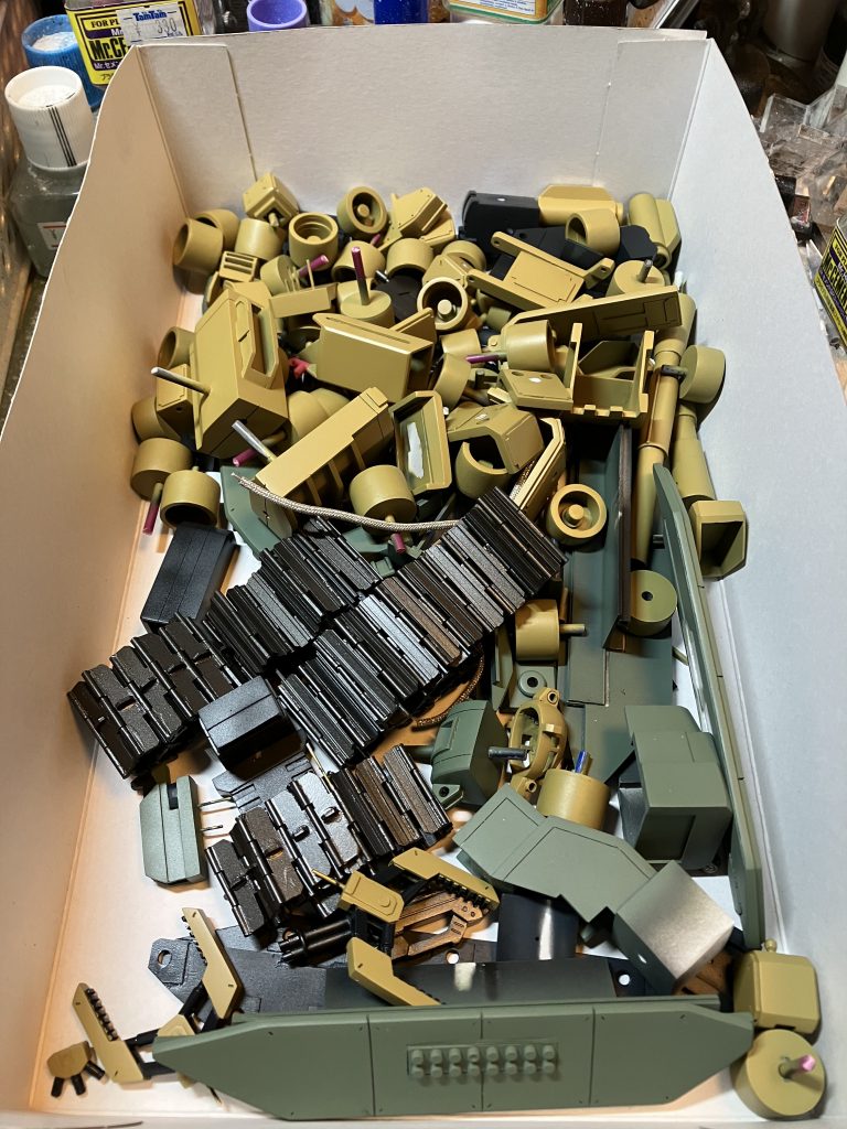 これからデカールとスミ入れしていきます♪転輪の数が38個、1個ずつ塗装するのに、めっちゃ大変でした