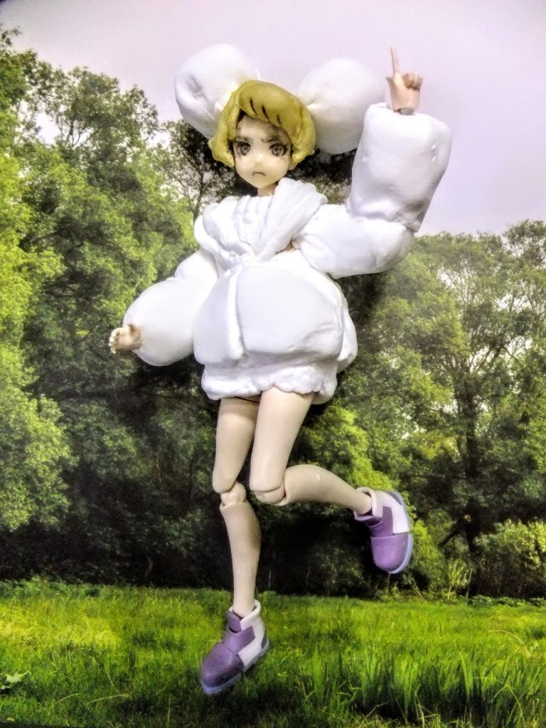 造形の元ネタは男物の大きなパーカーを羽織った感じイメージしています。スニーカーは境界戦機のシオンちゃんから流用しています(笑)