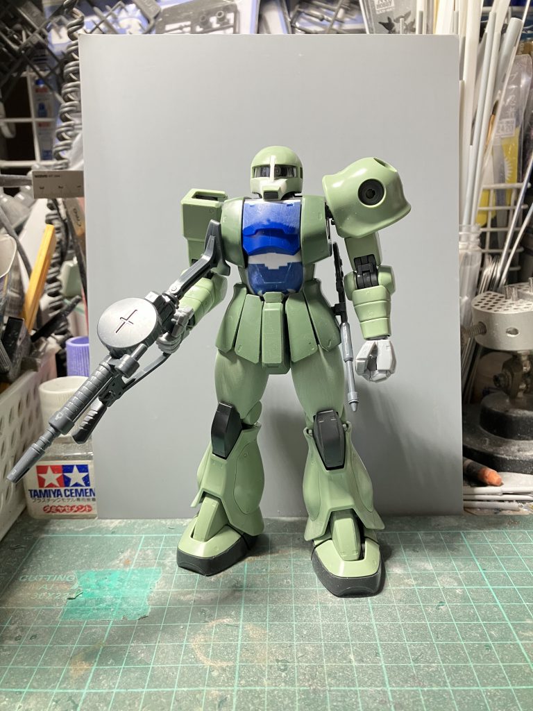 ザクⅠはファーストのイメージが強いので余計なスジボリは必要無し、アニメ調にします♪捨てサフ吹いて傷チェックして塗装に入ります♪
