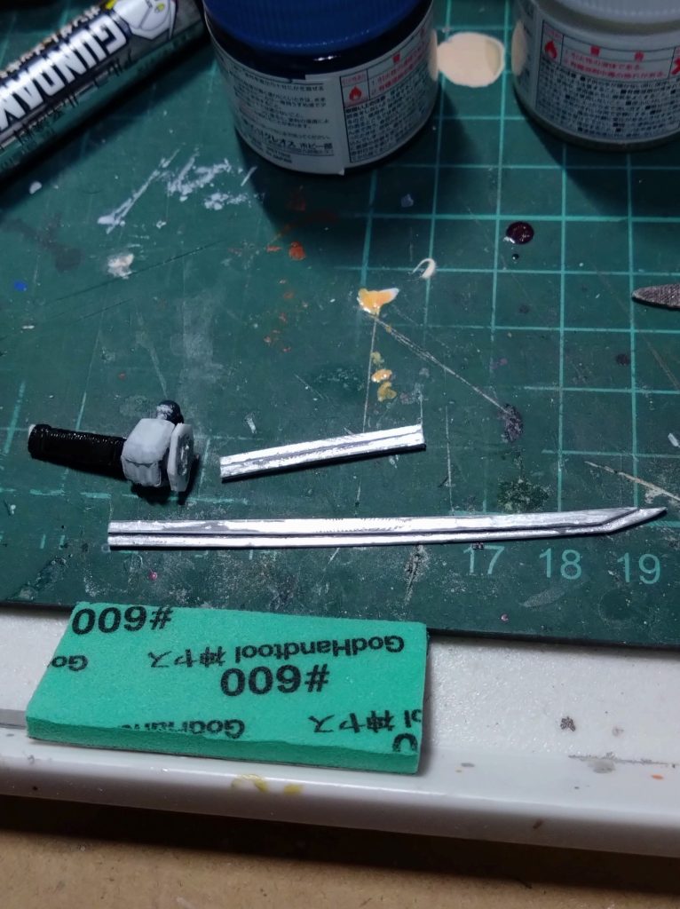 ドンマイです(^^;) 既製品の刀 ハンドパーツと合わないと言ってもディティールが細かいから削ったり出来ないですもんね そういえば鬼滅のフィギュア作って刀の柄も糸で巻いて自作してる人が居ましたね