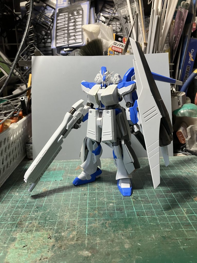 脚部と増加スラスターをパテで固定と胸部ちょっと隙間があったから、そこもパテで埋めて成形は完全硬化待ち後に