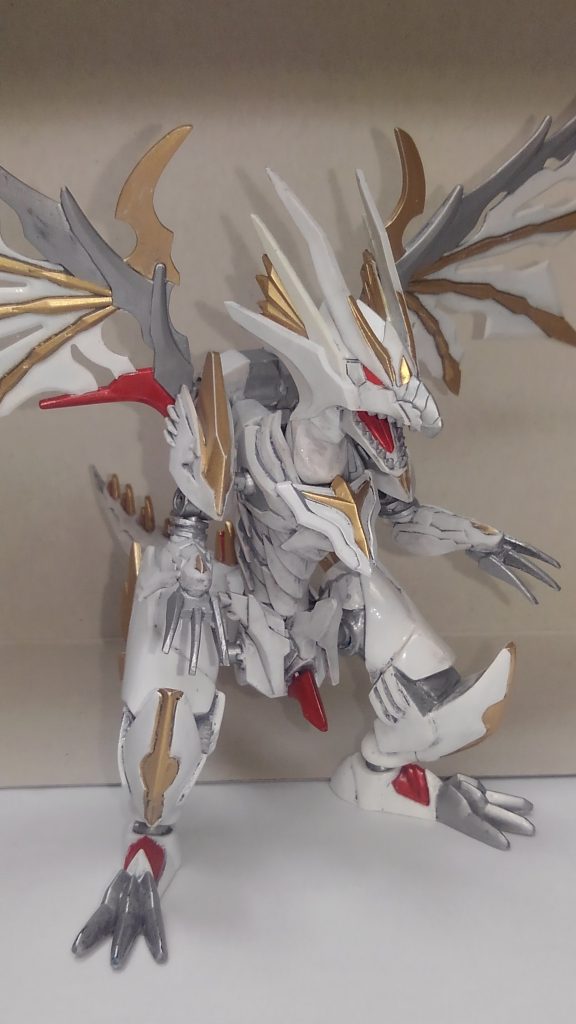 作成中のドラゴンにクレオスのウェザリングカラー、マルチグレーを塗りたくって拭き取りました。いや素晴らしい。お手軽簡単。私のような素人にはまさしく神の薬。