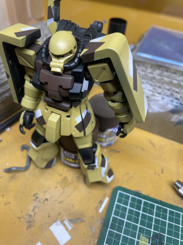 前回書いたように、いまいちモチベーションが上がらず放置されていたザクさん、、、ノリで色を塗ったらそれっぽくなってきたので急にやる気UP!単細胞(笑)