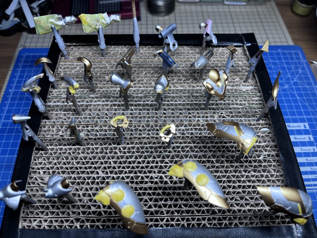 前作制作時に上手くいった、違う溶剤の塗料を用いた重ね塗りではなく、今回は修業のため、可能な限りマスキングでの塗り分けを試みています。