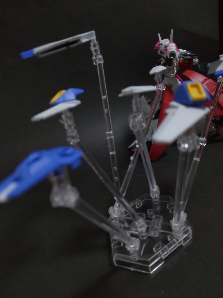 ウェポンディスプレイベースでガンビットの奥行き配置・構図を色々試してみました。1セットだとちょっと足りないので手持ちの物も使ってます。棒はそのままの長さだと腰あたりまでしか高さがないのでできる表現に少し窮屈さを感じるかもしれません。ただ連結できるし複数差し込み穴があるのでそういった工夫で色んな表現を探れそうです。