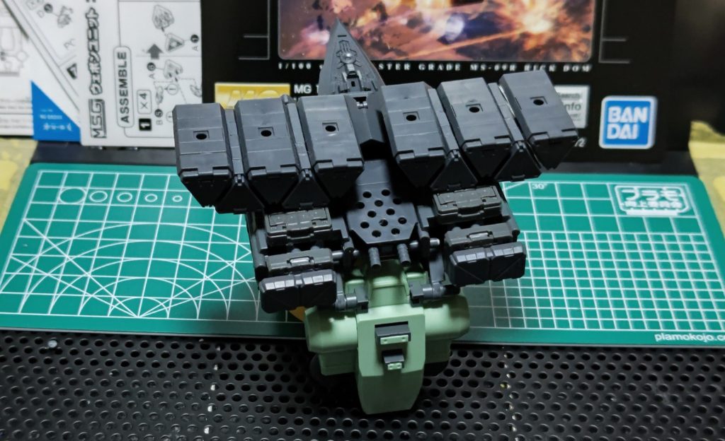 今のバックパックにつけてる武器はこんな感じでしょうか。機体本体にもハイメガキャノンや両肩にもミサイルハッチがあったりで、こんな弾薬庫みたいなジェガンは恐ろしいですね😱