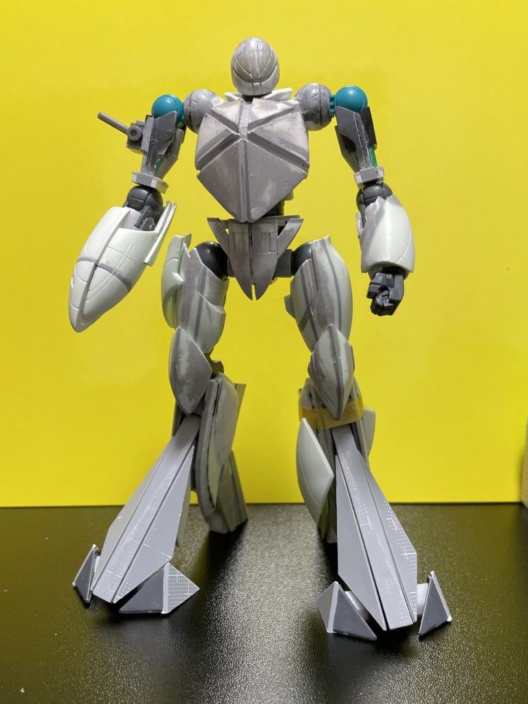 アオリ気味な正面 胴体と太ももおよそ2ミリ幅増し。赤い腹部は…