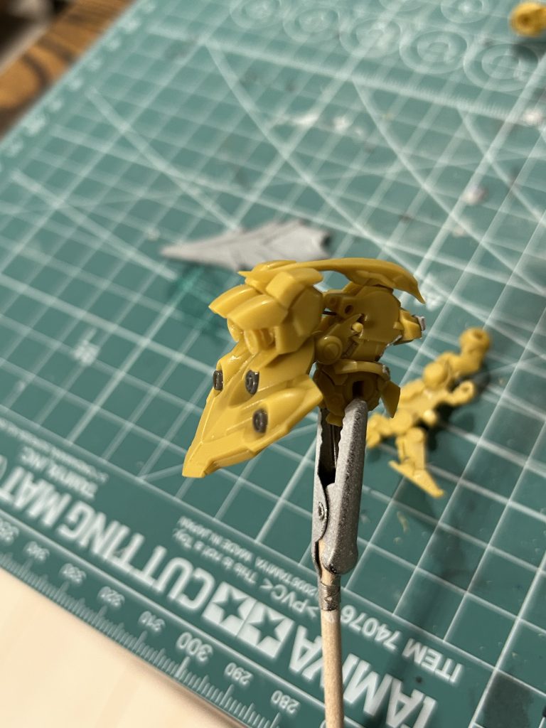 プラ版で制作しようかと思ったのですが、曲線を作るのが厳しそうだったので泣く泣くグフのパーツを使いました😭