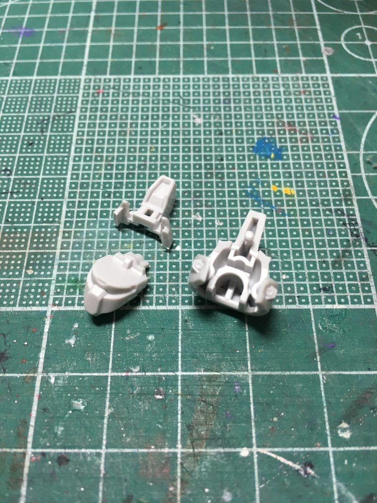 頭部は頰当てを切り離してメット後ろ側に接着。フェイスの後ハメ化を行いました。なおこのままだと嵌まらないので調整します…