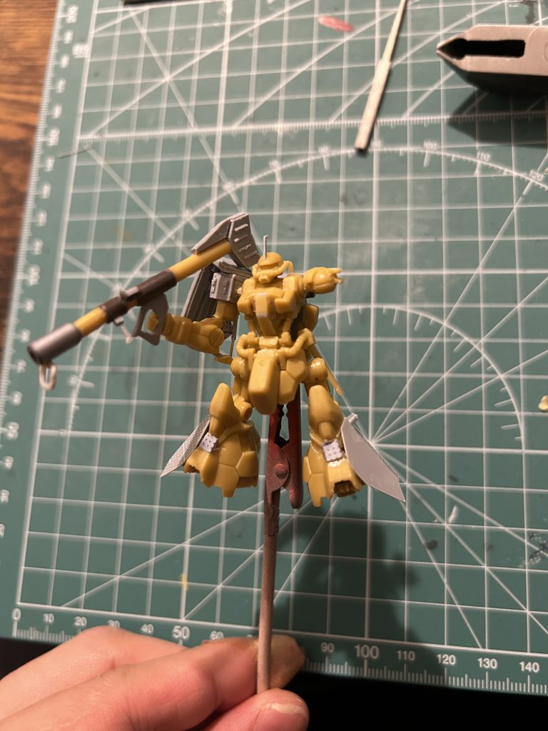 グフを宇宙用にしようと思ったのですが、ザクを地上用に改造したものを何で宇宙用に戻すんじゃ!?…ハッ!?じゃあ元のザクに戻せばいいじゃない!ってのが制作の経緯です。笑