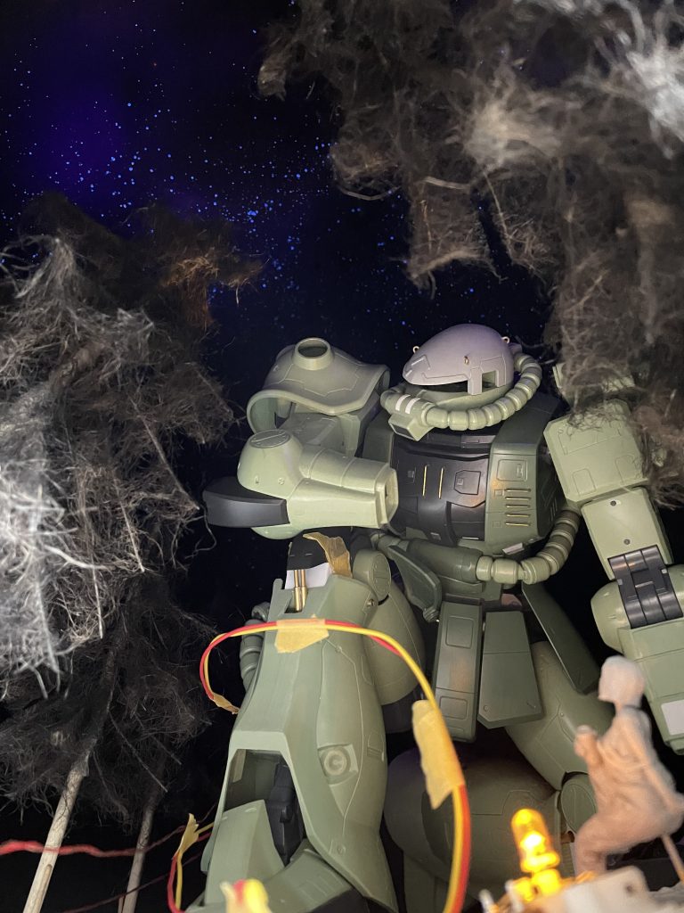 UVで星とを光らせるって、雰囲気ある膝立ちザクと相まって、相乗効果がハンパない感じですね。