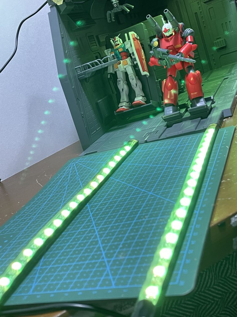 戦国丸 2023.03/06更新 23 632 4 いいねしたモデラー(4) 0 作品を共有 テープライトタイプのLEDを物色していたら、格納庫に使えそうでしたので購入。 車内用・USB多色発光リモコン切り替えの優れもの。 格納庫ジオラマの天井に貼り付けて見たら良い感じだったのでホワイトベースにも付けて見ました。 お手軽仕上げならこのまま両面テープで固定でも有りです。 色も変えられるし点滅もします。 カタパルトならではの演出も(^^) カタパルトのレール溝横にLEDピッチの穴を空けて床下に仕込むのも有りですね。 電飾 LED ホワイトベース カタパルト 機動戦士ガンダム ジオラマ コメント コメントをして応援しよう コメントにはログインが必要です 戦国丸 最近、電飾にはまってます。 3 バンシィ ユニコーンモード 爆光再び RGバンシィのLEDの仕込み完了しました。 今回はユニコーン… 5 フェネクス 発光 HGフェネクスのメッキキットにLEDを仕込みました。 3 バンシィ・ノルン デストロイモード PG バンシィのアームドアーマーDEとアームドアーマーXCに… 9 νガンダム サイコフレーム 発動 MG νガンダム サイコフレーム+フィンファンネルの電飾完… 戦国丸さんのページ この作品をお薦め作品に設定する Please login to update your profile! Please login to update your profile! Please login to update your profile! Please login to update your profile!