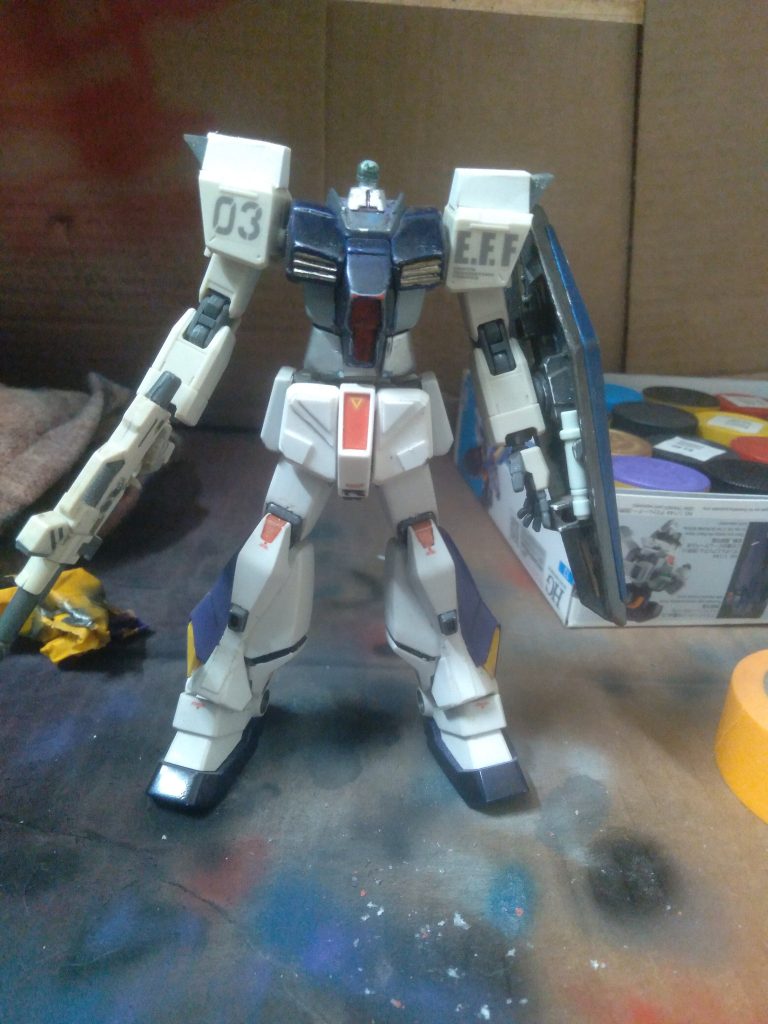 This is my next project. It is a GM I will be making. I have a head for it haha. I will be removing the current thrusters on the shoulders in favor of some better one. The lower body is a mix of GM space command(?) And Tristan. The torso is from the GM/GM and the arms are from a ground GM. The shield is also GM/GM. It will be called the GM R-type(?)