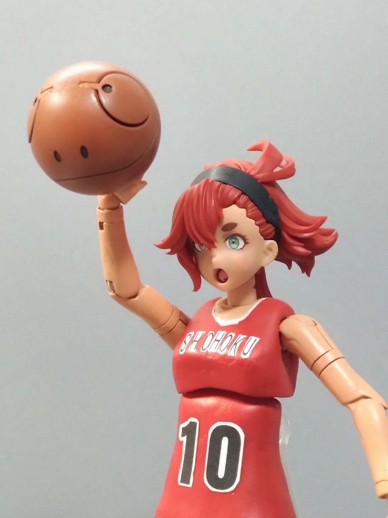ただ肩回りが逞しいのが気になりますね。バスケのユニフォームはタブ付いているイメージなので、ユニフォームと肌の境目に深くモールドを入れればいい感じになりそうとか思いました。腕の受けも丸く深くモールドを入れて肌色で塗り分ければさらに良さそう。
