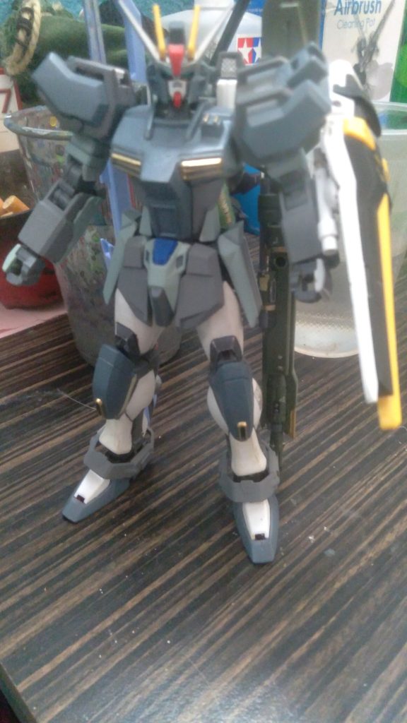This is one of my Strike custom builds. It’s meant to be a special ops Strike. A machine used on special missions that is able to get in under the radar and destroy any and all enemy mobile suits. I’m not quite done with the paint job. The backpack is from barbatos lupus rex that’s been modified. The anti ship sword is from the perfect strike freedom and the agni is from the perfect strike. I have also added 2 beam saber handles to the shield. I transplanted the freedom knees to the strike legs using putty. Plastic plate was used to keep the backpack from moving around haha. I still need to find a beam rifle for it though. Let me know what you think of it!!
