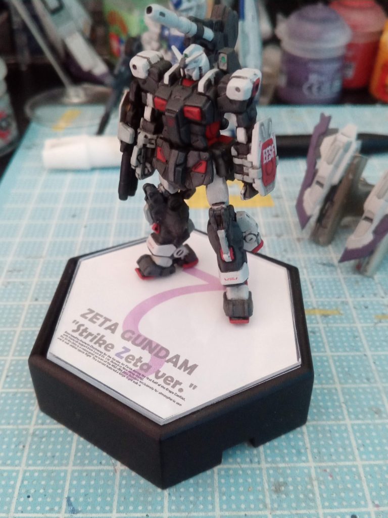 休憩がてら台座も作っちゃおー的な。昔に買ったシャープナーコレクション(鉛筆削りw)が台座にいいんでないかと。フィギュア部分ぶっこ抜き、その部分にプラバンで文字を印刷したもの(光沢紙に印刷予定、今回は普通紙で)を挟んで完成。いいじゃんね!フルアーマーガンダムちゃんでテストショット。