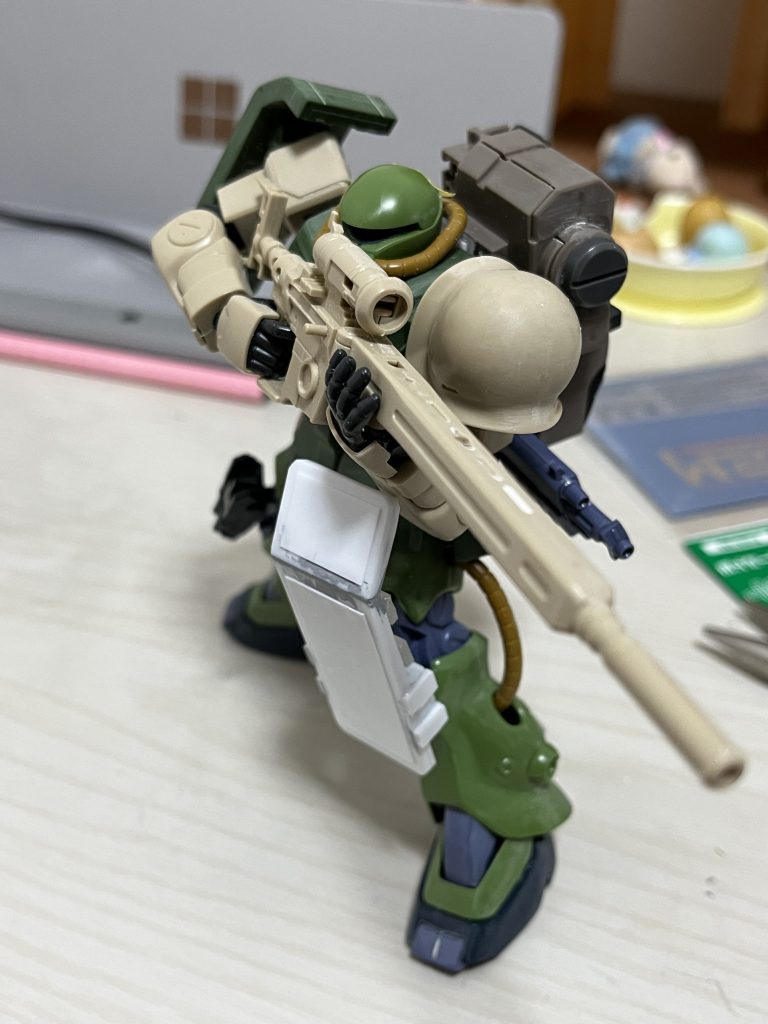 最近連投しまくりですが、ザクⅡFZ(狙撃改修機)の進捗です。明日は多分スタークジェガンの方を手掛けるので、一旦区切り。